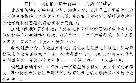 充分發(fā)揮長株潭國家自主創(chuàng)新示范區(qū)、湘江新區(qū)、湖南自貿(mào)區(qū)等國家級(jí)平臺(tái)優(yōu)勢,支持長沙加快引進(jìn)動(dòng)力電池、儲(chǔ)能電池關(guān)鍵材料及電芯電池高端制造等產(chǎn)業(yè)鏈關(guān)鍵環(huán)節(jié)項(xiàng)目和上下游優(yōu)質(zhì)企業(yè),加快產(chǎn)業(yè)創(chuàng)新平臺(tái)、中試測試平臺(tái)、檢驗(yàn)檢測平臺(tái)建設(shè),打造全球先進(jìn)儲(chǔ)能材料研發(fā)中心城市,株洲、湘潭配套建設(shè)一批電池正負(fù)極、電芯電池、電池回收利用等項(xiàng)目,強(qiáng)化三市產(chǎn)業(yè)協(xié)同效應(yīng),引領(lǐng)和帶動(dòng)全省鋰電池及先進(jìn)儲(chǔ)能材料產(chǎn)業(yè)高質(zhì)量發(fā)展。