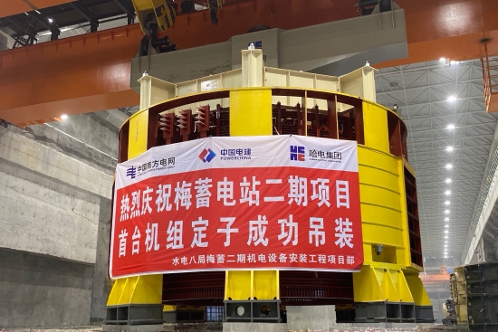 11月8日,梅蓄電站二期項(xiàng)目首臺(tái)(5號(hào))機(jī)組定子吊裝完成,為2025年首臺(tái)機(jī)投產(chǎn)發(fā)電奠定了堅(jiān)實(shí)基礎(chǔ)。