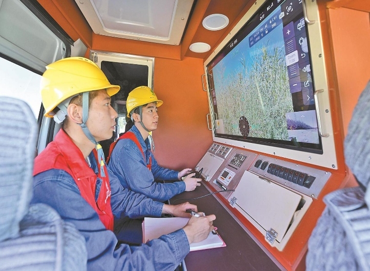 7月21日,寧夏銀川供電公司員工利用移動式無人機(jī)指揮車遠(yuǎn)程操控?zé)o人機(jī),對110千伏輸電線路開展巡檢與紅外測溫,確保迎峰度夏期間電網(wǎng)平穩(wěn)運行。(袁宏彥 攝)