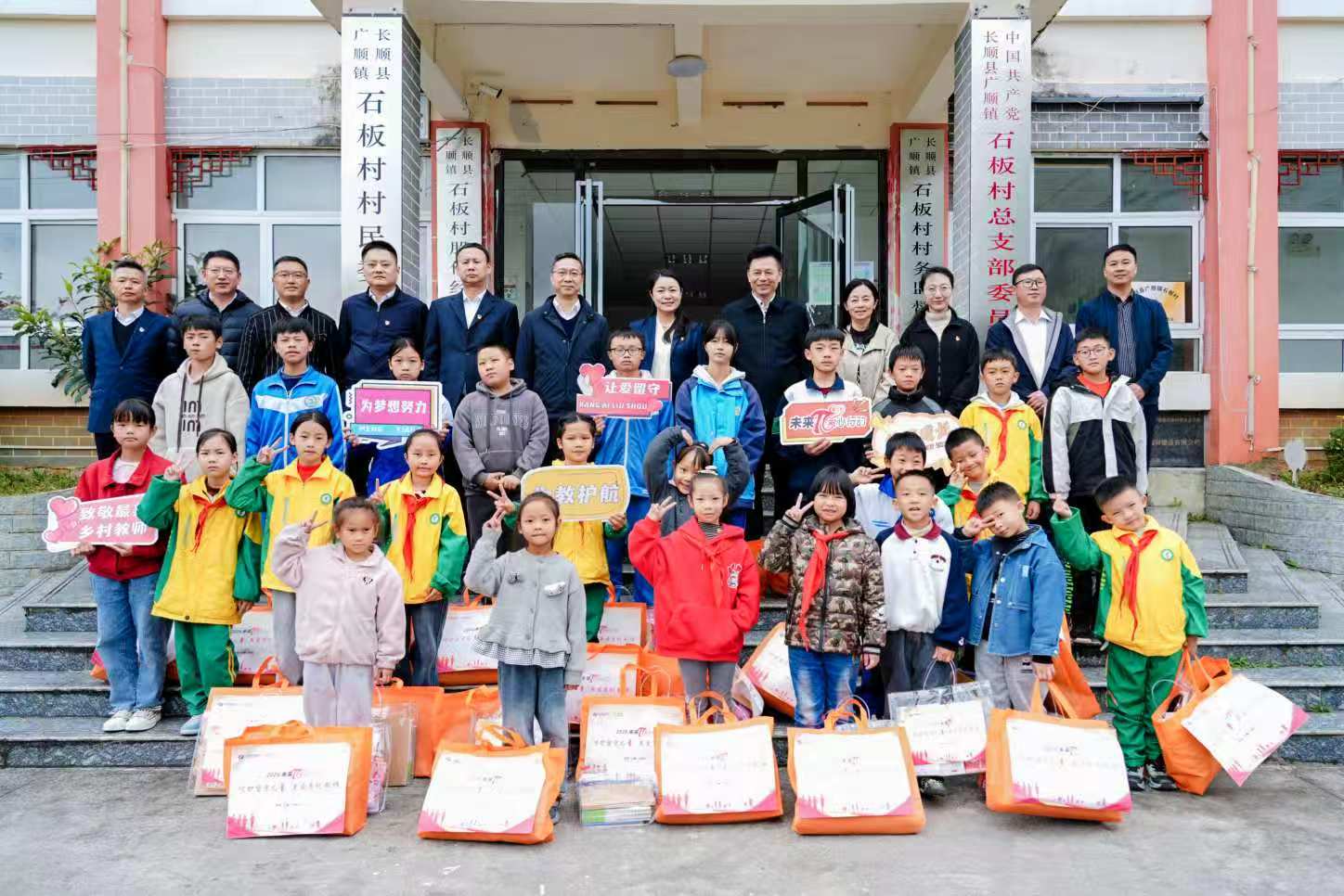 慰問環(huán)節(jié)中,李文華為鄉(xiāng)村教師送上愛心體檢卡,武琳向石板村黨支部捐贈(zèng)空調(diào)和辦公電腦,與會(huì)代表共同為24名留守兒童代表送上羽絨服、文具套裝、課外讀物等學(xué)習(xí)生活用品。隨后,石板村向公司贈(zèng)送錦旗,以此表達(dá)對(duì)公司持續(xù)幫扶的誠(chéng)摯謝意。