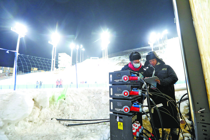 盡管有著嚴(yán)格的流程,供電保障團(tuán)隊(duì)還要不時(shí)應(yīng)對(duì)各種突發(fā)情況。雪上競(jìng)賽的一大特點(diǎn)是變化多——受氣溫、風(fēng)力等因素影響,測(cè)試活動(dòng)時(shí)間隨時(shí)可能改變。原定于19時(shí)舉行的雪上技巧測(cè)試活動(dòng)最終因大風(fēng)推遲,提前兩小時(shí)到位的值守人員原地等待,在活動(dòng)結(jié)束后1小時(shí)確認(rèn)保電任務(wù)完成,再?gòu)馁惖莱冯x。