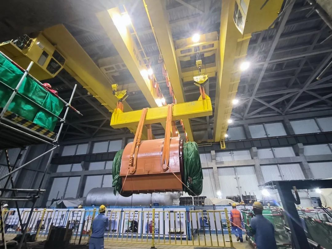 2024年9月14日20時28分,全球首個陸上商用模塊化多用途小型堆施工現(xiàn)場,“玲龍一號”常規(guī)島汽輪發(fā)電機(jī)組定子成功落位在發(fā)電機(jī)基座上,標(biāo)志著發(fā)電機(jī)定子吊裝就位成功,為后續(xù)汽輪發(fā)電機(jī)組的安裝打下了堅(jiān)實(shí)的基礎(chǔ)。海南核電在超強(qiáng)臺風(fēng)“摩羯”影響中始終扛起“海南能源壓艙石”責(zé)任,成功抵御超強(qiáng)臺風(fēng),確保核電機(jī)組安全穩(wěn)定運(yùn)行,在建工程在臺風(fēng)過后迅速復(fù)工復(fù)產(chǎn)。