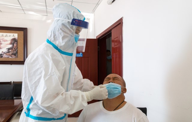 此次核酸檢測(cè)方式為鼻咽拭子。該院體檢中心主任孫逾介紹,人體咽部分區(qū)包括鼻咽、口咽、喉咽,三者的黏膜是連續(xù)的,均屬于上呼吸道區(qū)域。采用鼻咽拭子取樣時(shí),棉簽可以在咽部停留較長(zhǎng)的時(shí)間,操作者不需直視患者口腔,暴露風(fēng)險(xiǎn)低。接受檢測(cè)人員下拉口罩僅露出鼻孔,基本不出現(xiàn)咽反射,能夠獲得足量的采集標(biāo)本,有助于提高核酸檢測(cè)的準(zhǔn)確率。