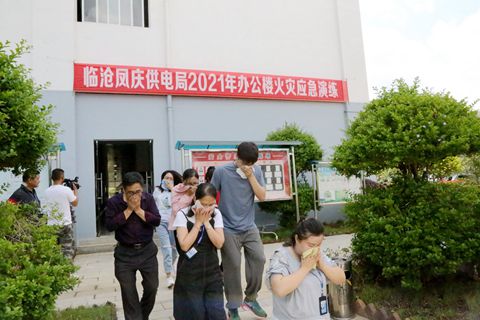 在火災演練中,演練模擬鳳慶供電局辦公大樓發(fā)生火災,當聽到警鳴聲后,正在上班的員工們沒有驚慌失措,按照突發(fā)應急預案,在各樓層疏散負責人引導下,按照火災逃生要求,用濕毛巾捂住口鼻,彎腰低行,有序地從辦公樓4個消防安全樓道疏散撤離。疏散過程中沒有出現(xiàn)堵塞、爭先恐后、推撞踩踏的現(xiàn)象。全體員工們到達安全場地時,立即集合,清點人數(shù),發(fā)現(xiàn)未有辦公人員被困于發(fā)電機房及辦公場所。
