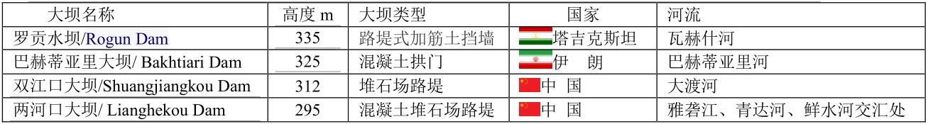 盡管目前世界上最高的大壩是中國的錦屏一級水電站,但是很快將讓位給羅貢水壩、巴赫蒂亞里大壩和雙江口大壩。