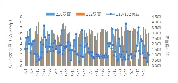 圖4 210/182雙面發(fā)電量增益對比