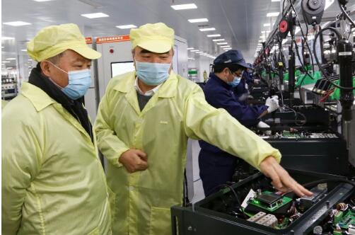 在陽光電源董事長曹仁賢的陪同下,宋國權一行來到占地超20萬平方米的陽光產(chǎn)業(yè)園,深入考察了生產(chǎn)車間多條產(chǎn)線,并詳細詢問了公司各項產(chǎn)品技術性能、市場應用以及供應鏈保障與產(chǎn)能運行情況??吹綀@區(qū)內(nèi)各項疫情防控措施到位、生產(chǎn)線上秩序井然,宋國權頻頻點頭稱贊。